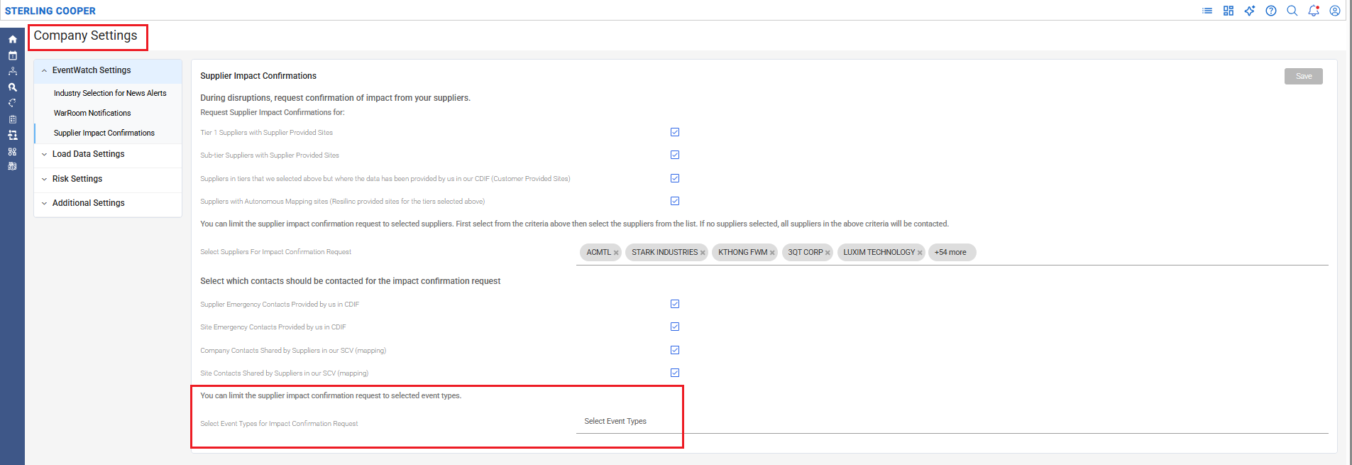 - Yes, Admin users can limit Supplier Impact Confirmation Requests to only the selected event types.