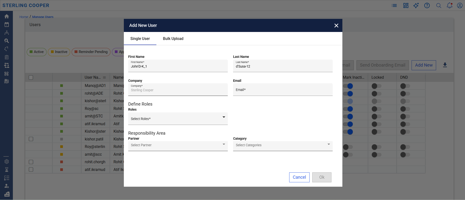 When creating a new user in the UM section, Company Admins must follow the naming guidelines below: