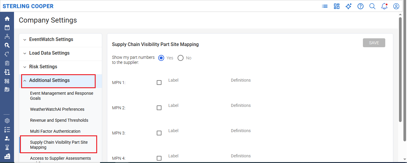 - The visibility of the Customer part number and description fields is controlled by the "Show my part numbers to the supplier" setting under Supply Chain Visibility Part Site Mapping Preferences. Its available under Additional settings option within company setting menu.