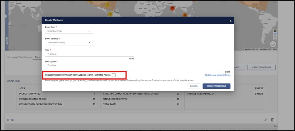 - If suppliers did not receive an Impact Confirmation, it is likely because the customer did not select the checkbox that enables supplier impact notifications at the time of WarRoom creation.