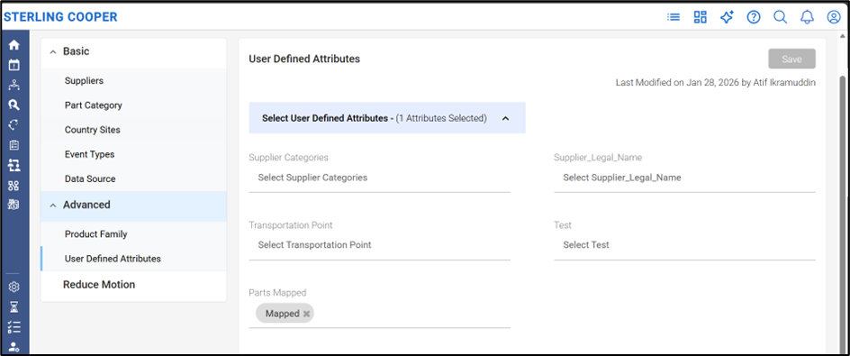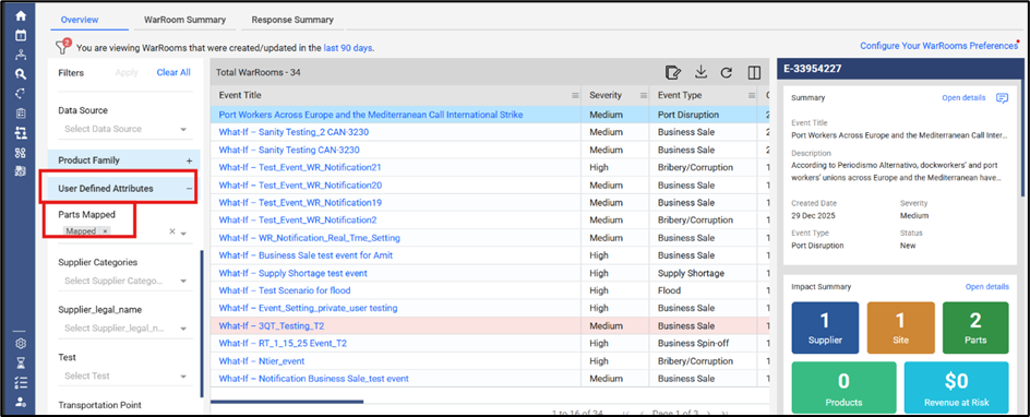 - WarRooms can be filtered by using a User Defined Attribute (UDA) to limit visibility to suppliers and sites with mapped parts.