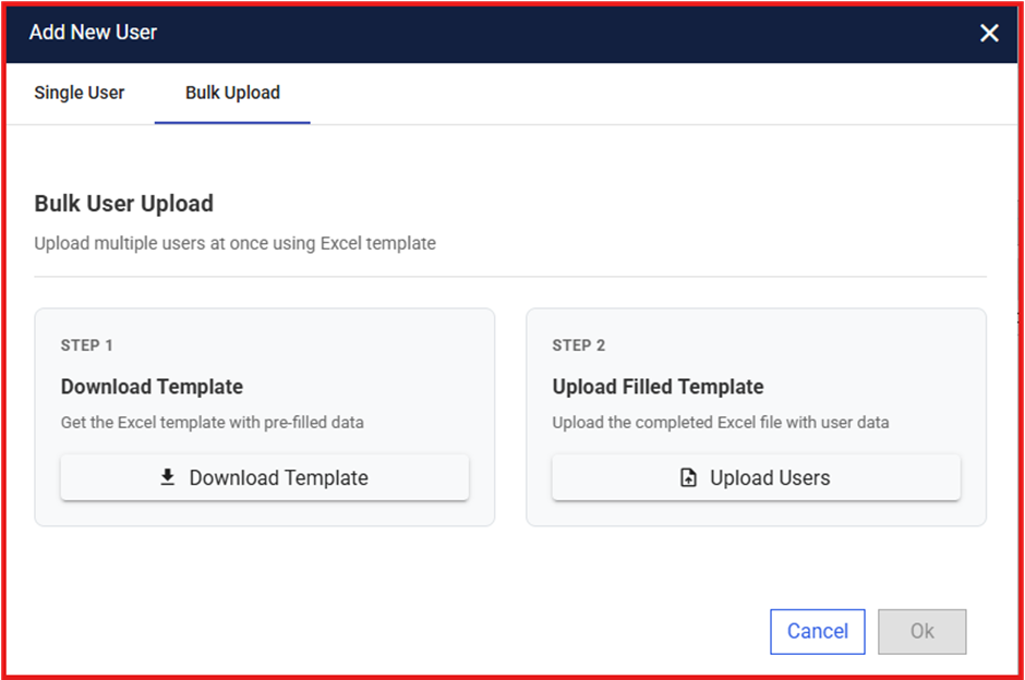 - Yes, you can onboard multiple users in your organization using the Bulk Upload feature available in the Manage Users section of the portal.