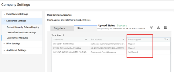 - Mark sites that have parts mapped as “Mapped,” and mark sites without mapped parts as “Not Mapped.” (You can refer to the Site Dashboard – Old Dashboard for selecting Mapped and Not Mapped part sites.)