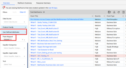 - Once this configuration is applied, only WarRooms associated with impacted parts will be displayed, effectively excluding WarRooms with zero part impact.
